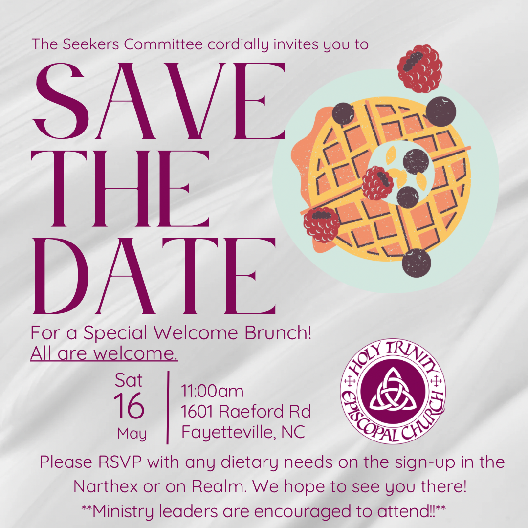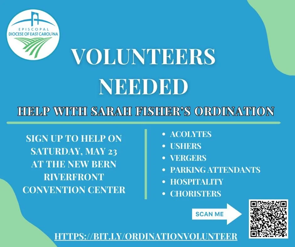 If you are planning on attending, please add your name to the list on Mother Nan’s office door by April 19. The diocese is trying to gather a rough count for seating.