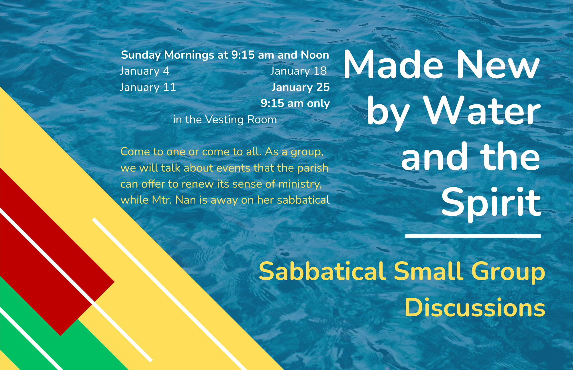 We're creating a welcoming space for anyone exploring what it means to be Episcopal -- whether you're brand new, rediscovering faith after years away, or have been in the pews (or chairs) for decades but still have questions.